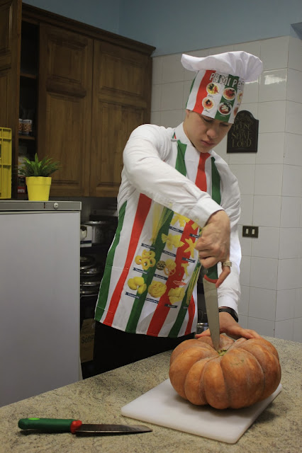 It's cold and drizzling rain most of the time in Rome these days. It's perfect soup weather. Maybe it's just us, but we haven't seen much zuppa (soup) in Italy. A couple of weeks ago we were in Palermo and stopped at a restaurant to have a bite to eat on the way back to the hotel. They had zucca rossa zuppa (red squash soup) on the menu. It was delicious. Consequently, I decided to try to replicate the recipe. Michael and I found a red zucca rossa at the market by the villa and decided to try it. Please don't ask for the recipe. I had a couple of recipes, but the ingredients are all different here. I did the best I could with what I had on hand. It turned out nasty.